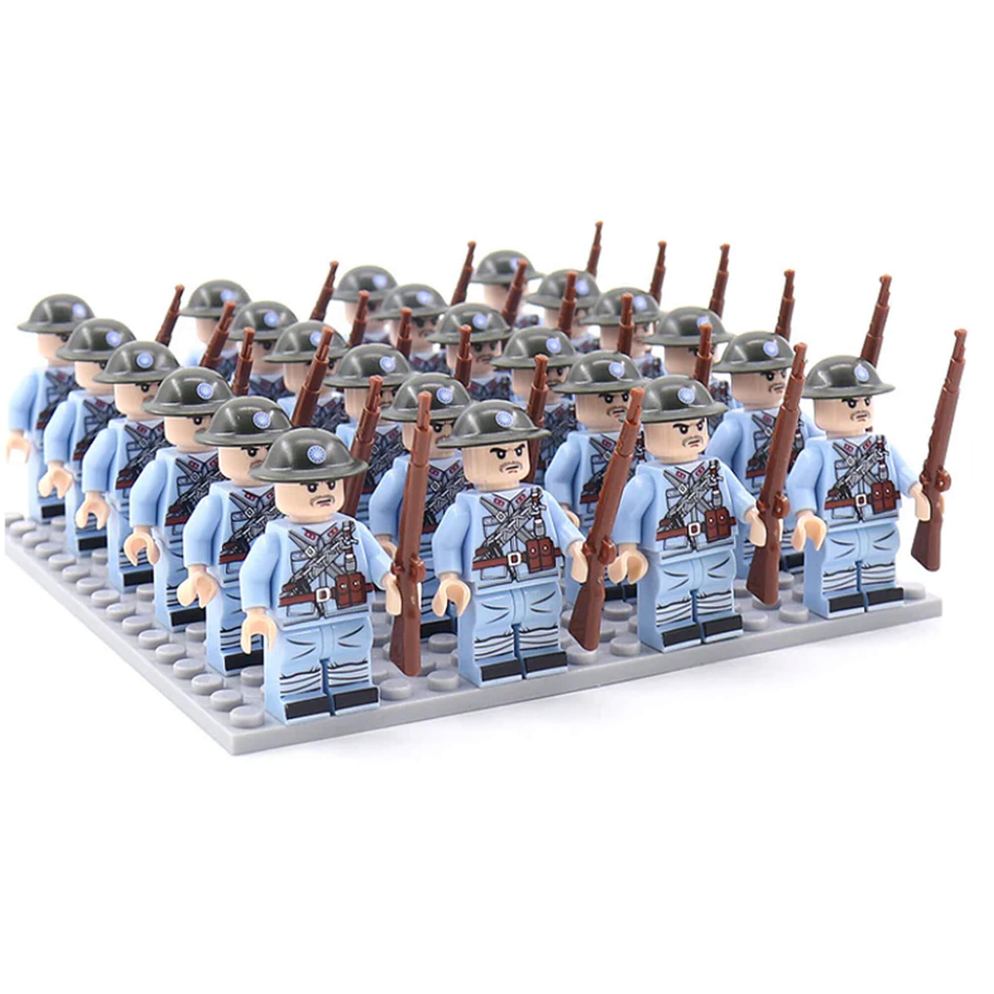 The 21PCs WWII Army Military Building Blocks Set allows children to relive the epic battles of World War II with iconic soldiers and equipment from Germany, France, Italy, Japan, and Britain. This 21-piece set offers a unique and exciting building experience, perfect for both play and collection. Each highly detailed figure brings history to life, providing hours of imaginative play while fostering an interest in the past.