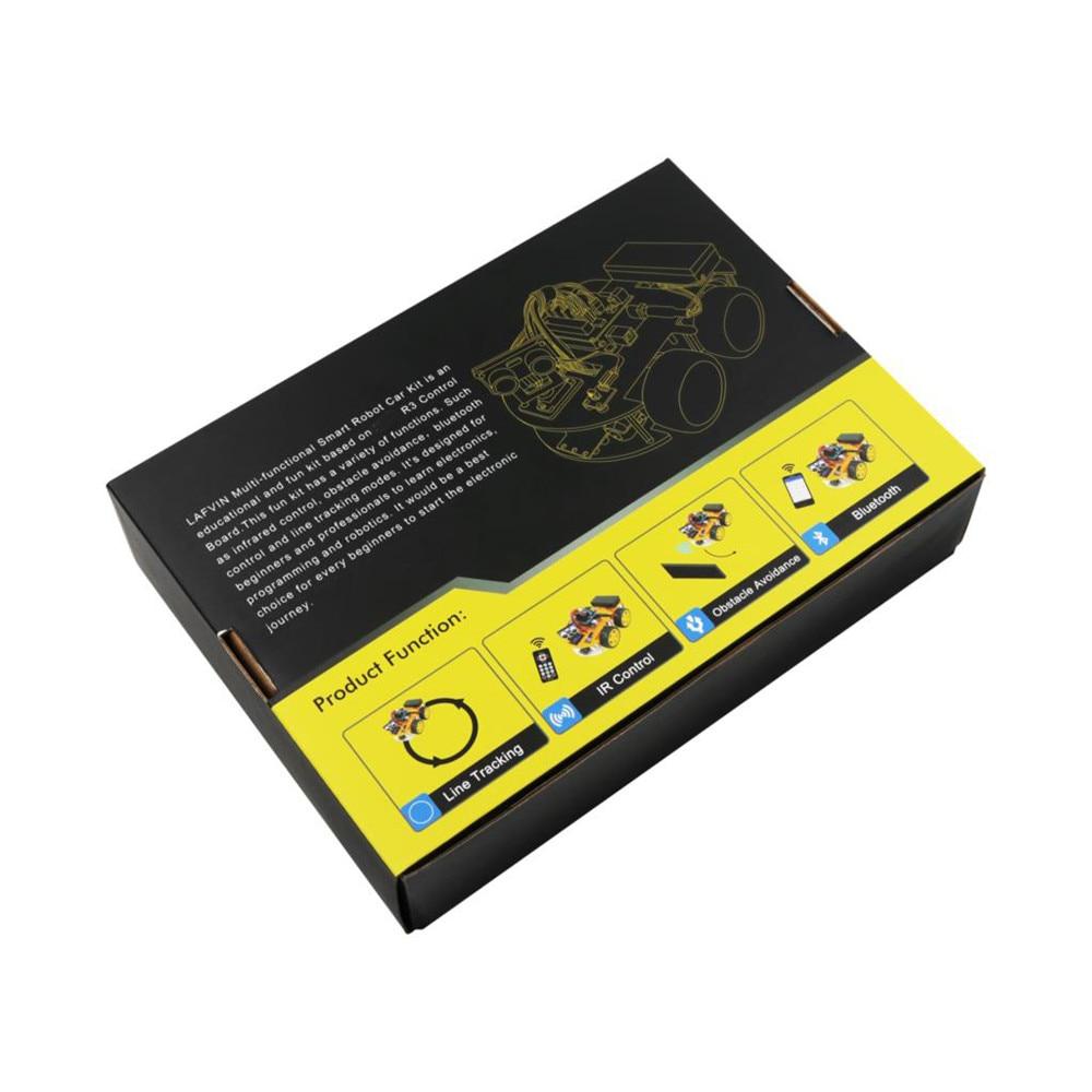 This Coding Robot is a multi-functional smart robot car, is an educational and fun kit based on UNO R3 Control Board. This fun kit has a variety of functions. Such as infrared control, obstacle avoidance, bluetooth control, and line tracking modes.
