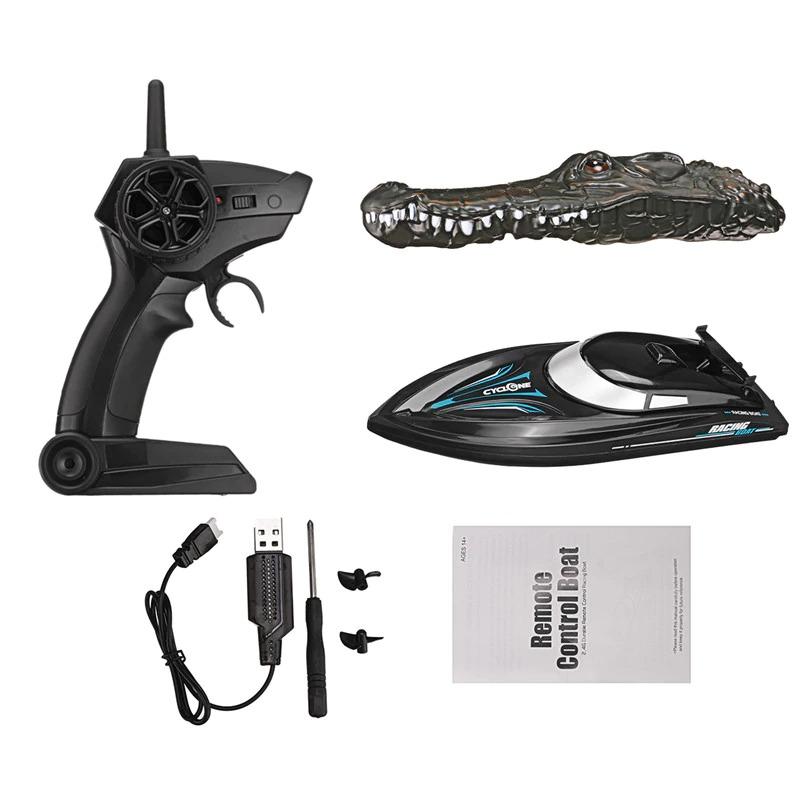 The alligator toy's made with the highest quality plastic. It is also waterproof, smashes, and wear-resistant, with great painting so it won't come out easily These RC toys are perfect to have a boat race on the pond, the pool, or the beach! You and your friends are going to become quite professional in boat racing.