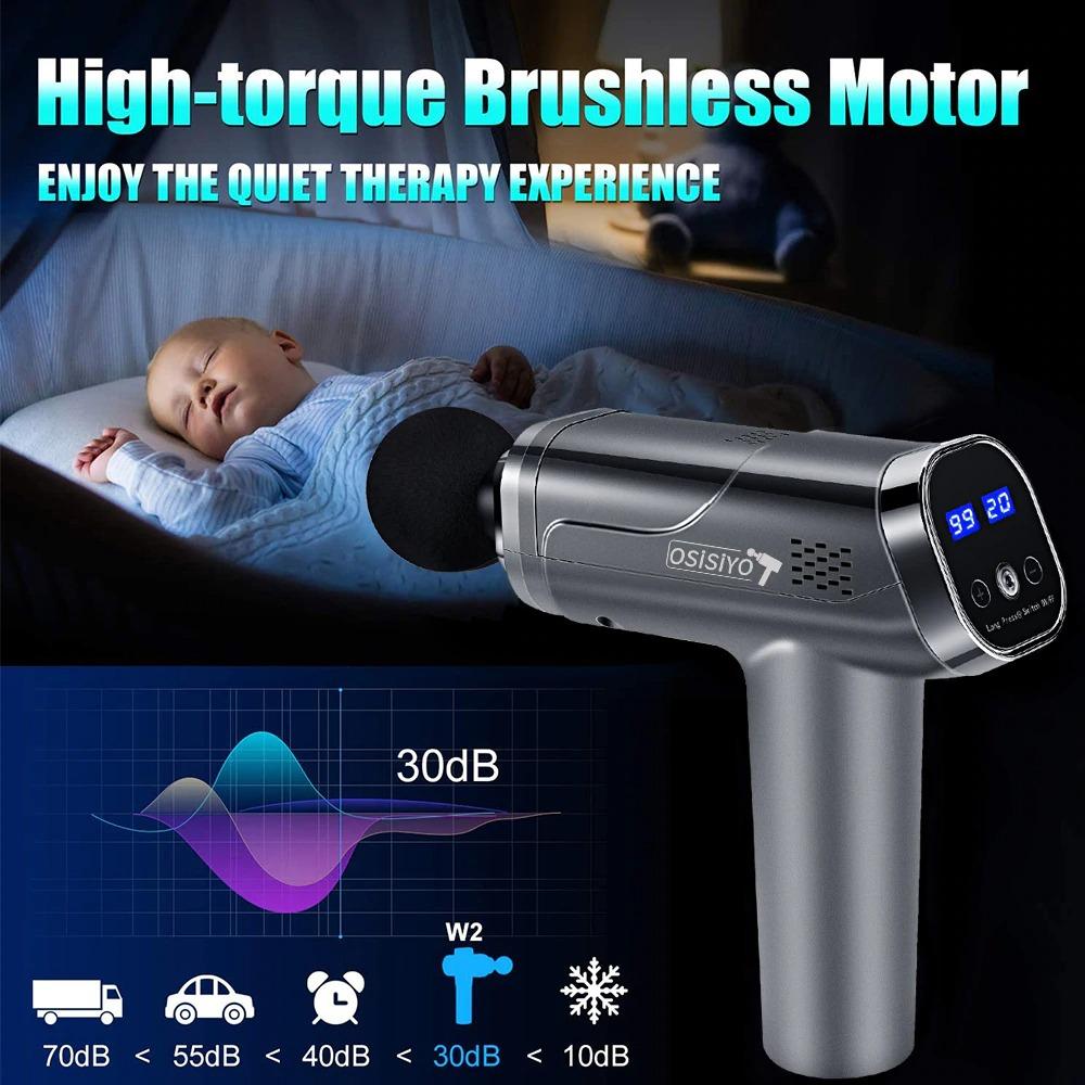 This electric muscle massager comes with an ergonomic handle so it is designed for a single hand use. Thank to this you can massage your muscles yourself, at home, anytime you want. If you are worried of waking up everyone at home, you can now relax and just thenjoy the massage, as this electric muscle massager is really quiet, with less than 30dB of noice. So much less than a sound of raining outside!