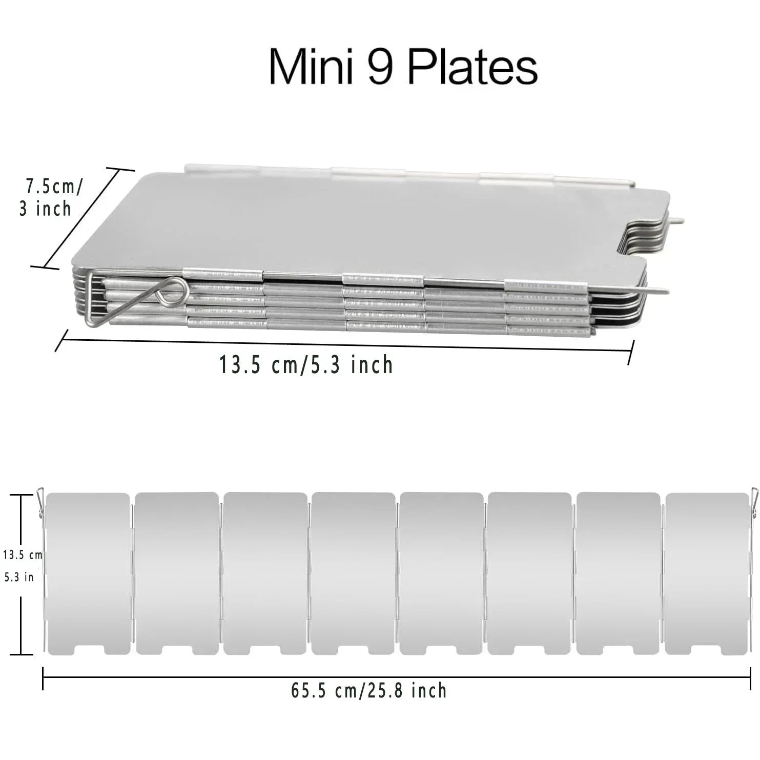 Folding Camping Stove Windscreen for Outdoor Camping. Outdoor Ultralight Stove Windscreen 9/10/12 Plates. Portable Camping Stove Windshield for Use with outdoor Small Stoves and Other Backpacking Picnic Stoves. This folding camp stove windscreen is a great addition to outdoor cooking with a camp stove. Removable plates to fit different sizes of stoves. Note: The material of the product is stainless steel. Collision of items and scratches during transportation. Please wipe it off. Does not affect use.