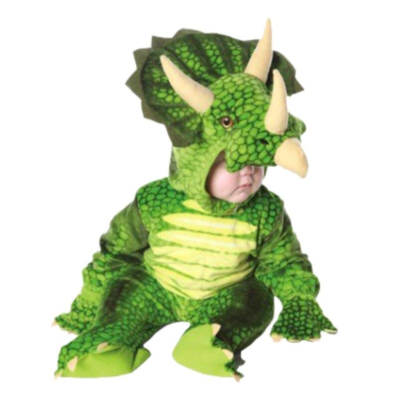 This Kids Dinosaur Costume is the cutest infant and toddler dinosaur costume, it comes with a soft, green jumpsuit made from polyester that velcros in the back for easy on and off.