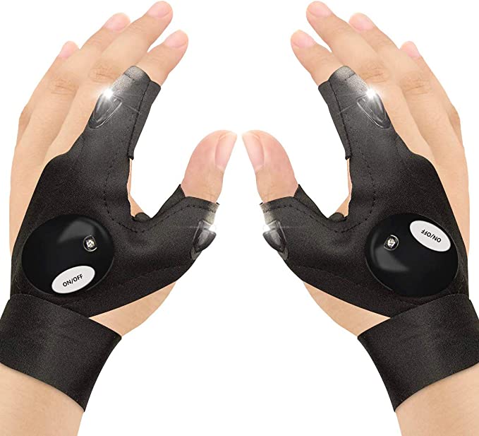 Multifunctional gloves. These led gloves finger lights can be used for many activities during night time or in the darkness such as car repairing, fishing, camping, hunting, patrol, cycling, emergency survival, etc. It's very handy when no one is there to hold the light for you.