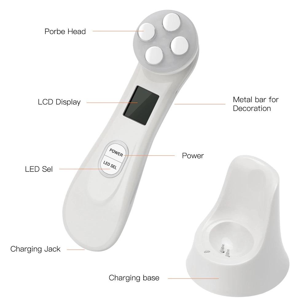 This radio frequency facial massager gives an electrical stimulation to your muscles that helps stimulate the regeneration of collagen, the elasticity of the skin and smooth wrinkles. It has LED lights to provide a painless treatment that helps the production of collagen and treat acne, it has 5 types of light modes: Red improves wrinkles, Green improves dark spots, Blue works to treat acne and oily skin, yellow and pink help to whiten the skin. You can use it anywhere as it is wireless and has a charging base included.