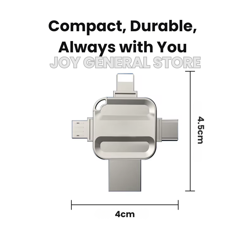 Say goodbye to storage limits and tangled cables. This compact memory stick for photos is designed with four essential interfaces in one device: USB 3.0, Type-C, Lightning, and Micro USB. Whether you’re using an iPhone, Android, iPad, MacBook, or PC, you can transfer and back up files instantly – no adapters required.