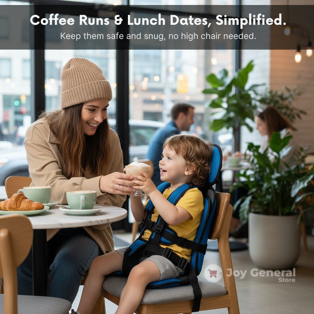 ✔️ Secure 5-Point Harness: Keeps your child safely strapped in, providing peace of mind whether at a restaurant or visiting friends.
