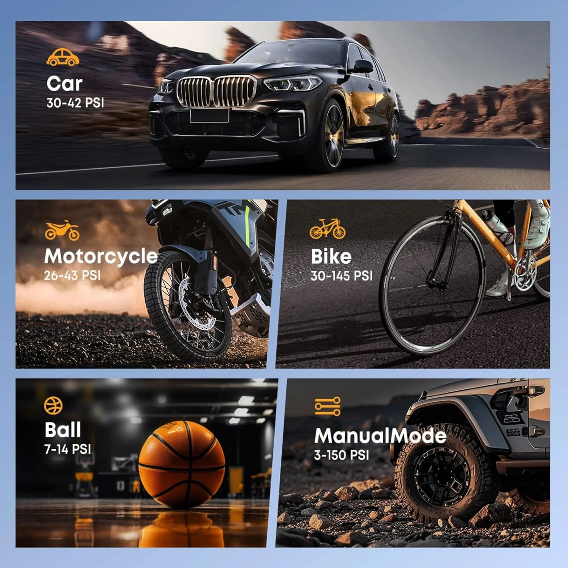This tire inflator is designed to fit easily in your glove box or trunk, making it an essential tool for any road trip or outdoor adventure. Lightweight yet durable, it's ready for any journey.