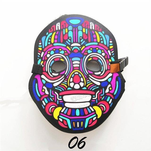 - Sound reactive LED mask: light will pulse by sensing the sound.