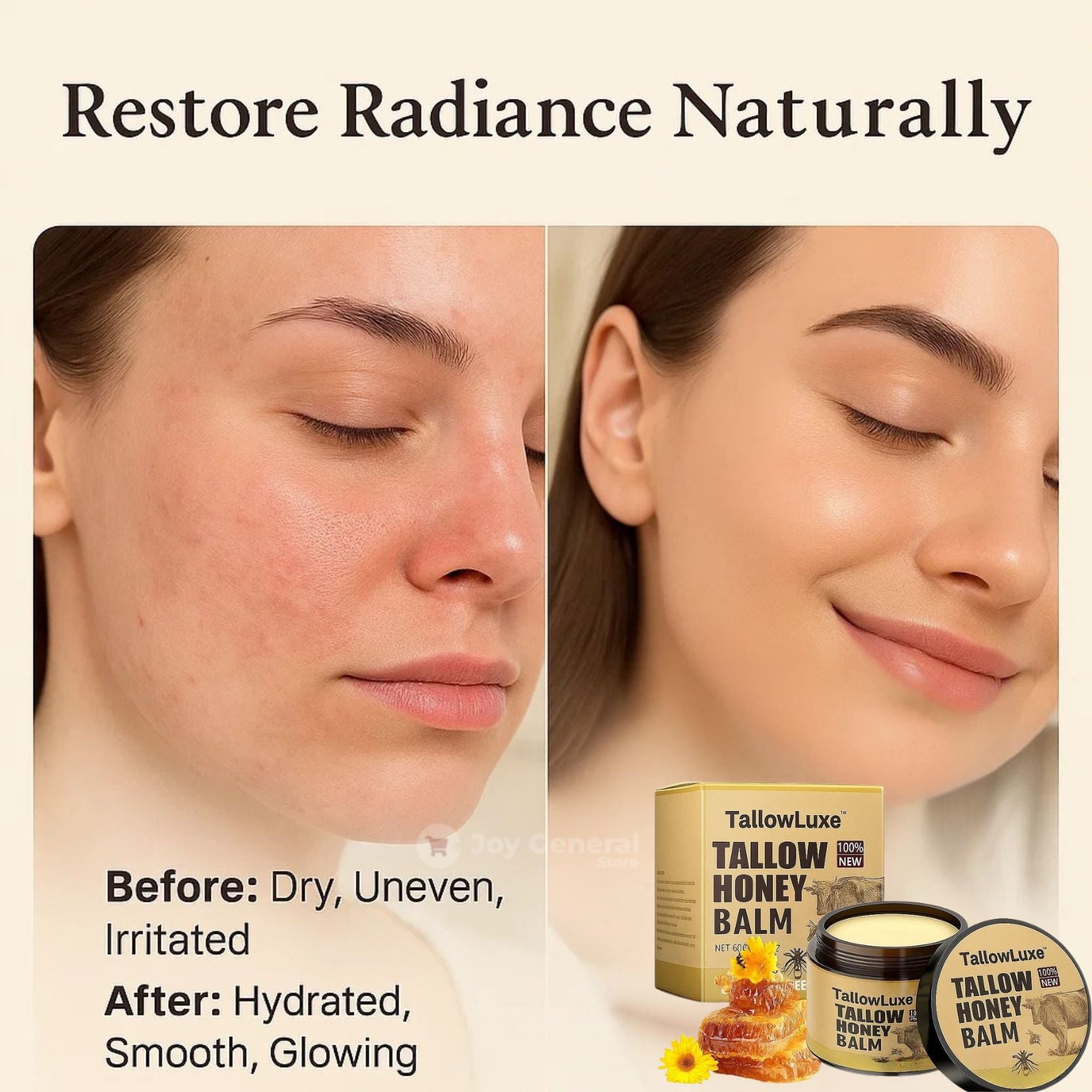 Natural Ingredients: Made with pure beef tallow and honey extract for gentle yet effective skincare.
