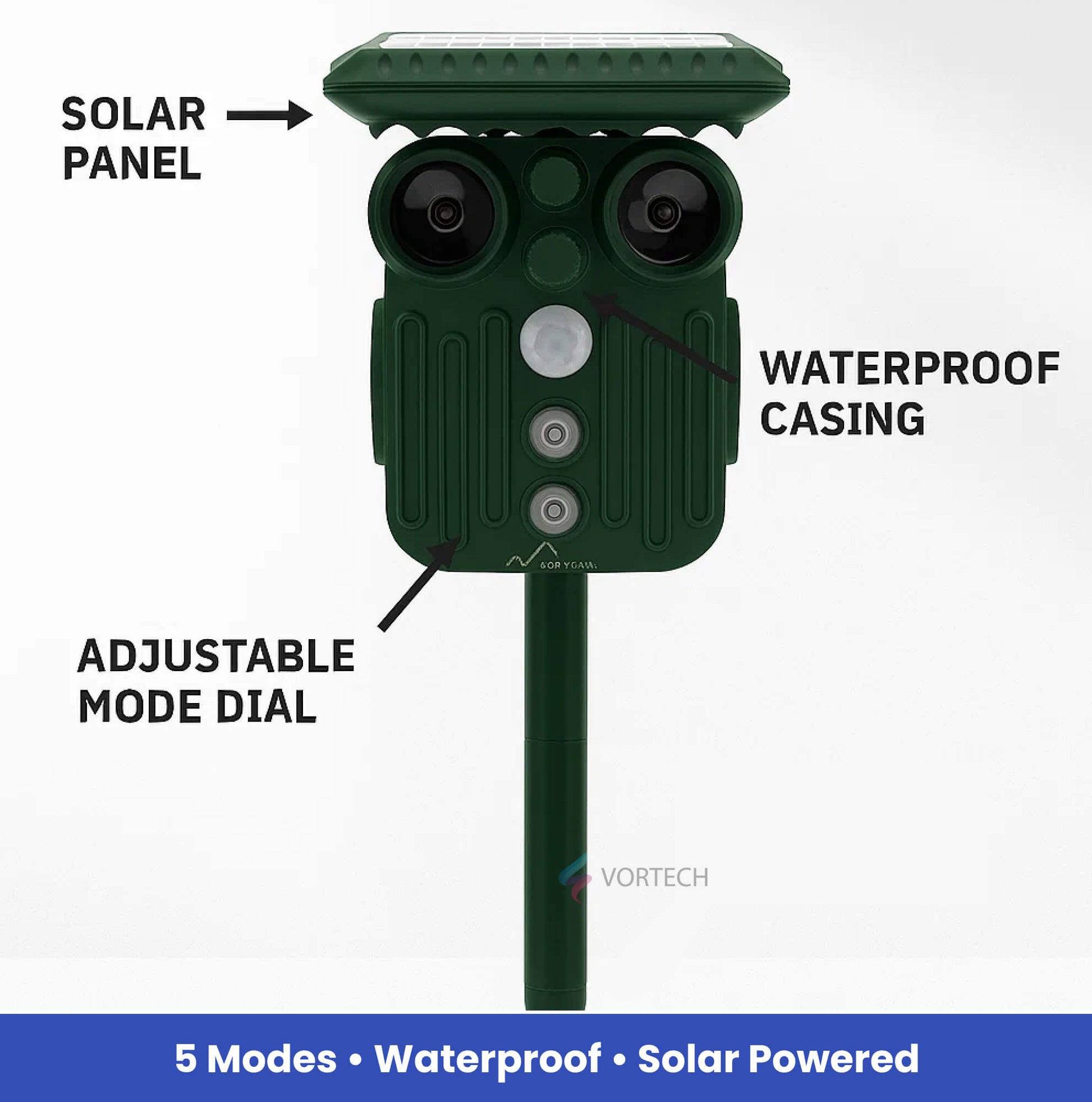 Ultrasonic Solar Deer Repeller | 5 Adjustable Modes. Waterproof & Eco-Friendly for Home Gardens and Yards