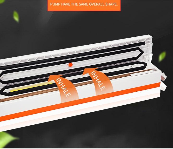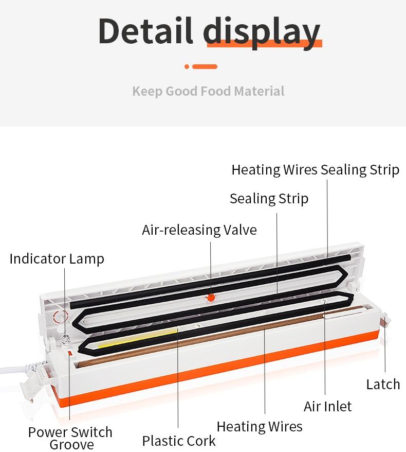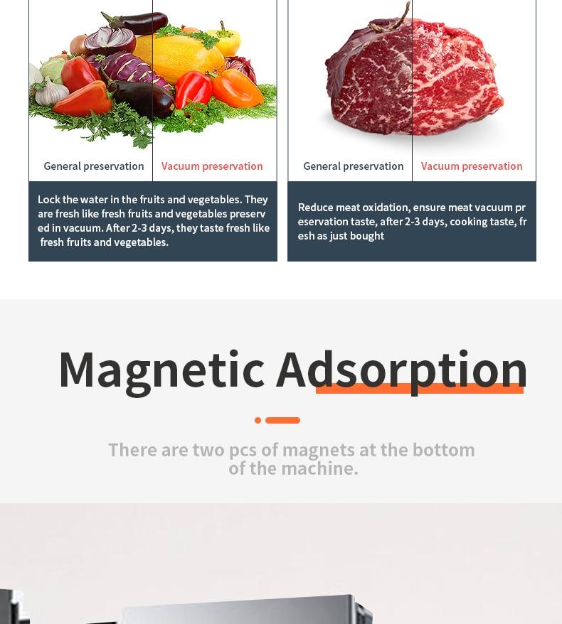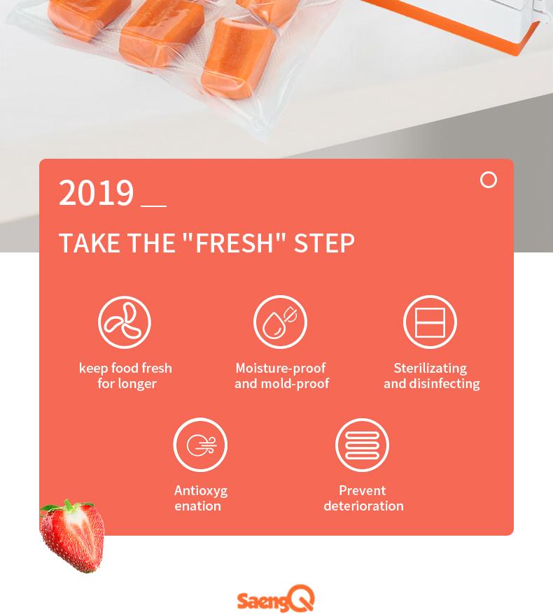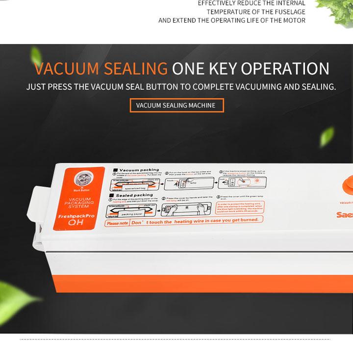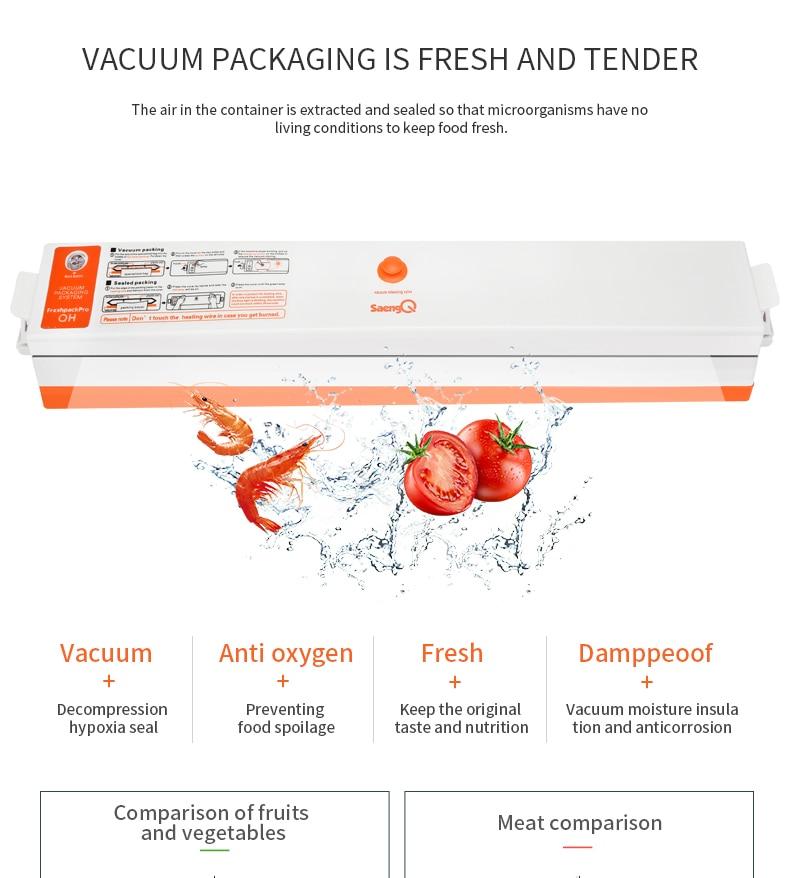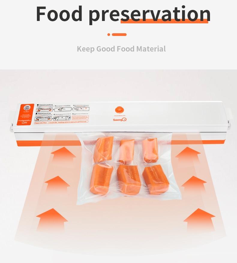 The food saver vacuum removes air from specially designed bags. Multi-layer material heat seals to keep air out and prevent freezer burn, reduces spoilage and food waste. And cooking and meal preparation will become easier, more economical and faster. It keeps food fresh for longer time! Prevent deterioration and antioxygenation.
